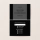 Añada un toque elegante a sus invitaciones de aniversario de boda con tarjetas de respuesta RSVP de Relieve metalizado negro y oro. El verdadero Relieve metalizado presenta una textura elevada que le da un toque elegante. En el frente aparece el verdadero Relieve metalizado "RSVP". El interior de la tarjeta tiene los detalles de la respuesta del boda, incluyendo tres opciones de comida. La parte trasera de la tarjeta de respuesta RSVP tiene el nombre de la pareja, el aniversario del boda y la fecha. Sólo cambia el texto para adaptarlo a tus necesidades. Utilice la plantilla para personalizar.