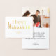 Feliz Hanukkah, foto familiar, personalizada con tu nombre y una dulce bendición con un verdadero Relieve metalizado de oro, tarjeta de vacaciones Hannukah . Diseño moderno y limpio. Tarjeta de saludo de festividad judía.