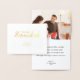 Feliz Hanukkah, foto familiar, personalizada con tu nombre y una dulce bendición con un verdadero Relieve metalizado de oro, tarjeta de vacaciones Hannukah . Diseño moderno y limpio. Tarjeta de saludo de festividad judía.