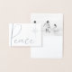 Minimalista y elegante, este Relieve metalizado plateado y sofisticada tarjeta de foto grises de Navidad te permiten mostrar tus fotos familiares de playa (¡o cualquier otra!) con un ambiente moderno. El simple y estilizado Relieve metalizado real "Paz" en el frente envía un cálido y acogedor mensaje de vacaciones. Y unos! Cuando los destinatarios abran la tarjeta, estarán encantados de ver la foto de su playa familiar en blanco y negro y el mensaje personalizado. Completamente personalizable para adaptarse a tu estilo personal— sólo tienes que subir tu foto y dejar que la magia suceda.
