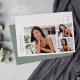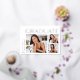 Una elegante y moderna tarjeta de invitación de graduación con tres fotos (una cuadrada y dos horizontales), con "graduados" en la parte superior con letras de Relieve metalizado dorado. Personaliza tu año de graduación, nombre y escuela a lo largo del lado izquierdo. Añade un mensaje personal a la parte posterior, junto con una foto adicional.