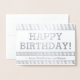 Este antiguo y clásico diseño de tarjetas de felicitación de cumpleaños de Relieve metalizado plateado presenta el mensaje "FELIZ CUMPLEAÑOS" en la parte delantera, junto con un mensaje de personalizable en el interior. Podría ser dado a alguien que esté celebrando un cumpleaños.