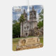 Fotografía colorida de la señalización de entrada para la Misión Concepción con la majestuosa arquitectura de la iglesia del siglo XVIII. Ornamento cuadrado de dos lados con diferentes fotos a cada lado. Ajuste el año según sea necesario.