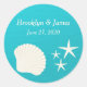 Conchas en pegatinas de bodas en la playa y texto de personalizable