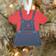 Diseño gráfico de overoles de bib de la artista/diseñadora Charmaine Paulson en un ornamento navideño de diseño folk de Pensilvania. El ornamento tiene plantillas de texto para su personalización.