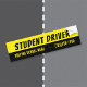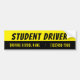 Una calcomanía negra y amarilla para advertir a otros vehículos . "Conductor Estudiante" está escrito en letras negritas . Agregue el nombre y número de teléfono de su escuela de conducir en la segunda línea .