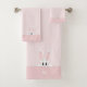 Elegante conejo y monograma sobre toalla de baño rosa claro. El monograma puede ser personalizado. ¡Ideal para todos!