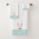 Elegante conejo y monograma sobre toallas de baño azul claro verde azulado y blanco. El monograma puede ser personalizado. ¡Ideal para todos!