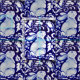 Un detalle de mi placa de cerámica original, con derechos de autor, con un intrincado diseño de conejo azul y blanco es el patrón de esta hermosa tela.
