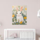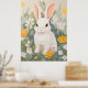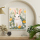 Eleva cualquier habitación con este hermoso póster que presenta un conejo blanco esponjoso entre vibrantes flores de primavera. La ilustración detalla el suave pelaje del conejo y sus ojos expresivos, complementados con un fondo de exuberante follaje verde y maravillas amarillas. Ideal para traer un toque de la tranquilidad de la naturaleza y la alegría de la primavera al interior, este póster es perfecto para guarderías, salas de estar o cualquier espacio que aprecie la belleza de la vida silvestre y la flora.
