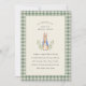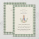 Conejo clásico de cuento de hadas; el color de fondo es editable, junto con todo el texto. Borde de gingham salvia