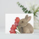 Conejo conejo con tulipanes rojos tarjeta de arte original.