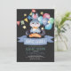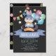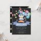 La invitación de cumpleaños de este lindo muchacho incluye un conejo conejo que mira desde el gorra de un mago con estrellas de oro falsas/falsas, banderas de afinamiento y globos de colores en acuarela sobre un fondo gris oscuro. En el reverso aparece un fondo negro con puntos de polka. Personalice sus necesidades. Puedes encontrar más productos a juego en mi tienda.