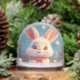 Un conejito personalizado adorable rodeado de coloridos decoraciones navideñas, creando un ambiente alegre y caprichoso. Perfecto para los temas de fiesta, decoración y alegría.