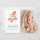Guión y ilustracion más lindo del personalizado Bunny con detalles en el elegante tipo de letra sans serif y su foto personalizado. El reverso está en el patrón de trenzado a rayas de color agua naranja