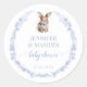 Eleva la ducha de tu bebé con estos pegatinas rústicos azules con un encantador conejo de Pascua adornado con un arco y texto azul claro para un toque de elegancia.