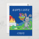 Papel colorido de Pascua, cesta y postal con nombre personalizado para los niños.