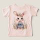 El conejo chica más lindo con un vestido azul listo para celebrar Pascua