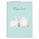 Conejo de Pascua con tarjeta de saludo de huevo. Todos los textos listos para ser personalizados.