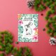Celebra la temporada con esta linda y personalizada tarjeta de Feliz Pascua que presenta una réplica de mi arte original de acuarela. Un dulce conejo (liebre) está rodeado de suaves flores rosadas y exuberante vegetación botánica en frescos tonos primaverales, creando un diseño alegre y elegante sobre un fondo blanco crujiente. "Feliz Pascua" aparece en tipografía moderna de pan de oro, y puedes personalizar el texto para agregar tu propio saludo o incluso adaptarlo para otra ocasión. El interior presenta un verde turquesa complementario, que se puede cambiar a blanco o cualquier color que prefieras. Perfecto para aquellos que se preguntan dónde encontrar tarjetas de saludo de Pascua únicas, este diseño ofrece una alternativa sincera y artística a las tarjetas ordinarias. Las tarjetas de Pascua surtidas están disponibles en mi tienda en línea, y puedes pedir cantidades múltiples para ahorrar en tu papelería de primavera. Para ver más tarjetas de Pascua de Victoria Grigaliunas, visita www.zazz