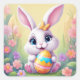 Huevo de conejo de Pascua acarició hoja de niña pequeña de Pegatina cuadrado