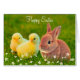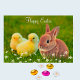 Conejo de Pascua beige dorado con pollitos y flores Tarjeta Feliz Pascua. El texto se puede personalizar para Pascua o cumpleaños.
