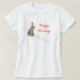 Conejo lindo con huellas en la camiseta de invierno festiva de nieve. Personaliza con tu propio saludo o palabras que actualmente lees Felices Fiestas.