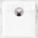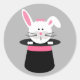 Un pegatina con un ilustracion de conejo asomando un sombrero de tope con un arco rosado en la cabeza. Busque invitaciones de cumpleaños coincidentes en Jill's Paperie.