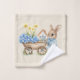 ¡Presentamos a nuestro Personalizado Bunny con Flores Azules paño de lavado de bebé! Con un pequeño conejo con flores silvestres azules, un carrito de madera con muchas flores silvestres azules y una casita en la parte trasera, este paño de bebé aporta encanto y alegría a cualquier habitación.
