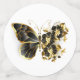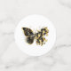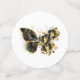 Mariposa de flores de oro con orquídea de joyería negra, decorada con hojas de oro sobre fondo blanco.