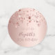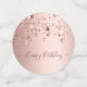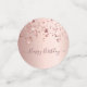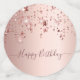 Confeti de mujeres y niñas para tu mesa de fiesta de 30 años. Un fondo de color rosa dorado falso metálico, de aspecto Relieve metalizado, decorado con estrellas en oro rosa. Plantillas para una fecha y nombre/edad 30. Letras de color oro rosa oscuro. Algunos confietti con nombre y fecha, otros con el texto: Feliz cumpleaños escrito con un moderno guión escrito a mano con chispas.