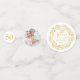 Dorado 50 aniversario boda de mesa personalizada. El gran tamaño tiene un oro y un blanco con una corona floral dorada y las palabras 50 años con dos corazones. Personalizado con sus nombres y fecha de boda. La tinta es de color oro, pero no metálica. El medio tiene una foto personalizada de la pareja de aniversario para que cambies a la tuya. El pequeño confeti tiene el número 50 con tinta dorada.