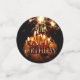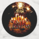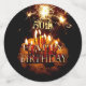 Se muestra una tarta de cumpleaños con velas y bengalas con un logotipo de feliz cumpleaños