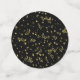 Cincuenta y Fabulous, negro y oro tema de la fiesta de cumpleaños. El guión negro está bordeado de oro y salpicado por todas partes con confetti dorado en el frente. El fondo es un fondo negro que coordina con confeti dorado.