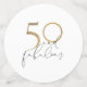 Un bonito diseño para los 50 años, este confeti "50 y fabuloso" presenta piezas de confeti blanco de diferentes tamaños, con "50" en falso Relieve metalizado de oro, y el texto en tipografía de escritura con letras de color negro. Un diseño divertido, elegante y moderno para el cumpleaños 50 de la mujer. Copyright Elegant Invita, todos los derechos reservados.