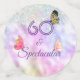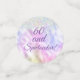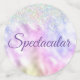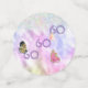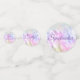 Estos divertidos discos de confeti presentan brillantes tonos morados, rosas y amarillos con chispas purpurinas pastel cayendo en cascada desde arriba. En el texto hay mariposas delicadas. Cada lado tiene un diseño diferente.