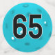Primer plano de un pickleball azul turquesa por 65 años. Se puede cambiar o eliminar todo el texto.