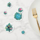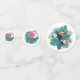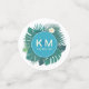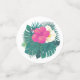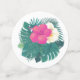 Confeti colorido con un marco verde azulado redondo para las iniciales de la novia y el novio y fecha boda bordeada por hojas de palma. Hay piezas adicionales con audaces florecimiento de hibiscos tocanos y acuarelas. El fondo blanco es opcional y se puede cambiar si se prefiere. Este confetti es perfecto para el verano, la playa y los bodas tropicales, cumpleaños y otros eventos. Busque ID577 para ver productos coincidentes.