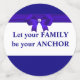 El ancla familiar sobre el Confeti de la Mesa azul, dorada y blanca. ¡El texto puede ser personalizado para la familia, la clase, la amistad o cualquier otra reunión!