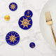 Anclaje familiar y rueda de barco sobre el Confetti de la Mesa real azul y dorada. Una rueda de barco también significa tiempo. Cada familia navega a lo largo del tiempo y el espacio en el mismo barco. ¡El texto puede ser personalizado para la familia, la clase, la amistad o cualquier otra reunión!