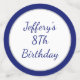Este diseño de temática náutica incluye un ancla marina azul y blanca. Ideal para los fiestas de la playa y de la piscina. Haga clic en los botones personalizado para cambiar el nombre, el evento y los colores