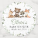 Añada un toque personal a la celebración de la ducha de bebé con estos artículos fiestas de diseño e inolvidables. El diseño incluye animales de bosque (oso, zorro, mapache, peón) y vegetación sobre fondo blanco.