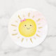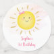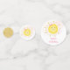 Este bonito confeti de cumpleaños ofrece un sol dulce con un fondo de color rosa acuarela y falsos toques de Relieve metalizado dorado.