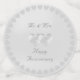Elegante confeti de feliz aniversario con dos corazones plateados en el centro rodeados por un círculo de corazones. El Sr. y la Sra. y Feliz Aniversario pueden ser personalizados. El texto es sólo del lado frontal de puntos medianos y grandes.