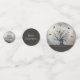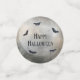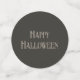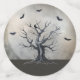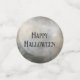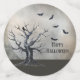 Un árbol espeluznante se alza sobre el telón de fondo de una enorme luna. Un cuervo negro se sienta en sus ramas y varios murciélagos vuelan en el aire. La "Halloween feliz" se puede cambiar o borrar si se desea.