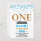 Confeti azul invitación para el primer cumpleaños