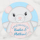 Diseño de una ducha de bebé de ratón, con un dulce y divertido personalizado que es genial para un bebé de fondo azul.
