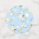 Este bonito juego de mesa es perfecto para una ducha de bebé, sobre todo cuando el niño que se espera es un niño. En tonos azules, la característica es la imagen de una cigüeña que lleva ese precioso paquete azul y con una gorra de rayas azules. La imagen se coloca sobre un fondo blanco decorado con estrellas azules. Otras imágenes incluyen un corazón y un patrón de múltiples cigüeñas en azul. La tipografía azul que dice "¡Es un niño!" está en la parte trasera de la pieza más grande. ¡Maravilloso por un fiesta que revela sexo!