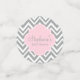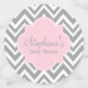 Patrón de chevron gris y blanco con un toque rosa pastel de mesita de ducha de bebé. El zigzag gris y blanco y en el centro hay una hoja de quatrez rosa pastel con el texto personalizado.