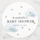 Este bonito confeti con una mesita de ducha para bebés presenta falsas estrellas purpurinas de oro y nubes onduladas sobre fondo blanco. En el reverso, el fondo es azul claro, con motivos de estrella purpurina de oro falsos. Cambie el color de fondo y personalizarlo para sus necesidades.
